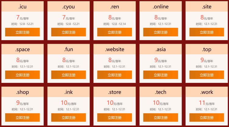 部分后缀优惠,基本上是一些适合短期一年玩玩的域名,不适合建议长期的网站用途。