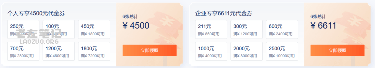 个人专享券仅限实名认证为个人身份的用户领取,企业专享券仅限实名认证为企业身份的用户领取,自领取开始有效期30天,可用于续费、升级、新购场景。