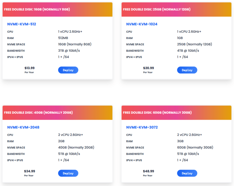 Hostodo,算是一个国外的小众主机商。商家有提供斯波坎、拉斯维加斯、迈阿密三个数据中心。以前有提供OVZ架构10美元年付左右的VPS主机产品的,现在也全部调整NVMe硬盘,这次黑五的活动也有发布四款年付套餐低至13.99美元。