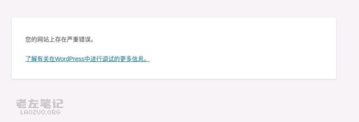 今天老左在帮助客户升级WordPress的时候我看他网站也比较简单就直接在后台手工升级的。升级后打开网站有出现”There has been a critical error on your website.”的错误提示。