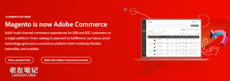 Magento,如果笔者没有记错的话,以前这款程序类似我们也有早期常用过的Zencart用于电商独立网站比较多,这个程序我们可以用于独立架设到服务器中部署独立外贸电商网站的。但是目前看介绍已经隶属于Adobe。