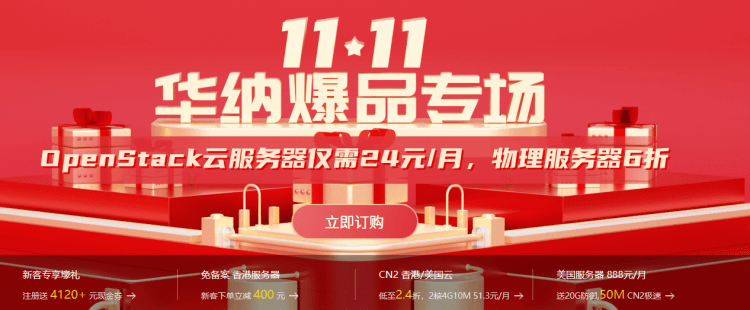 2015年成立的华纳云服务商在双十一期间也有发布促销活动,他们的产品主要包括提供香港及海外的云服务器、物理服务器、高防服务器以及高防ip等优质产品与服务。自营香港/美国/新加坡T3+数据中心。这次双十一活动全部产品参与活动,包括香港云服务器、独立服务器、高防服务器等。本次活动内容共分为以下五个板块,分别是:云机首购限时秒杀,独立服务器6折特惠专区、高防服务器4折专区、云服务器优惠专区、ddos防护服务以及老客邀新等板块。