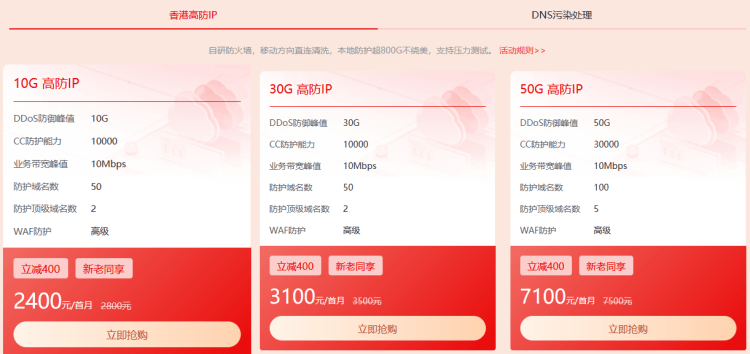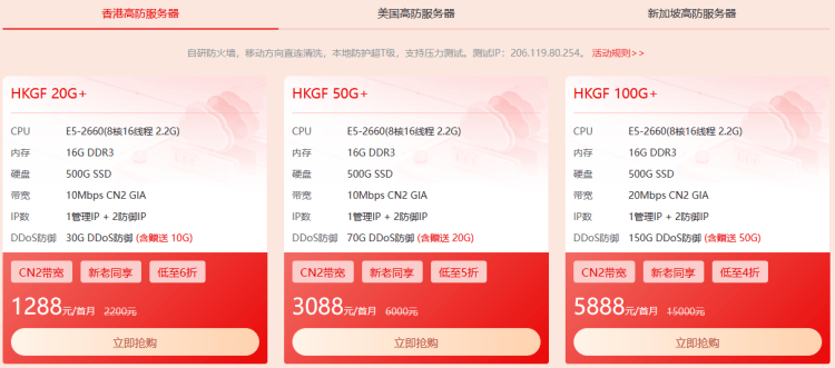高防服务器4折起,叠加送防御,买20G再送10G,买100G再送50G!香港/美国/新加坡机房自研防火墙,顶级DDoS防御系统,本地防护超T级,支持压力测试。