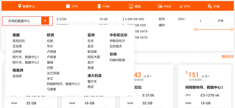 我们可以看到商家提供的云服务器、独立服务器机房还是比较多的。