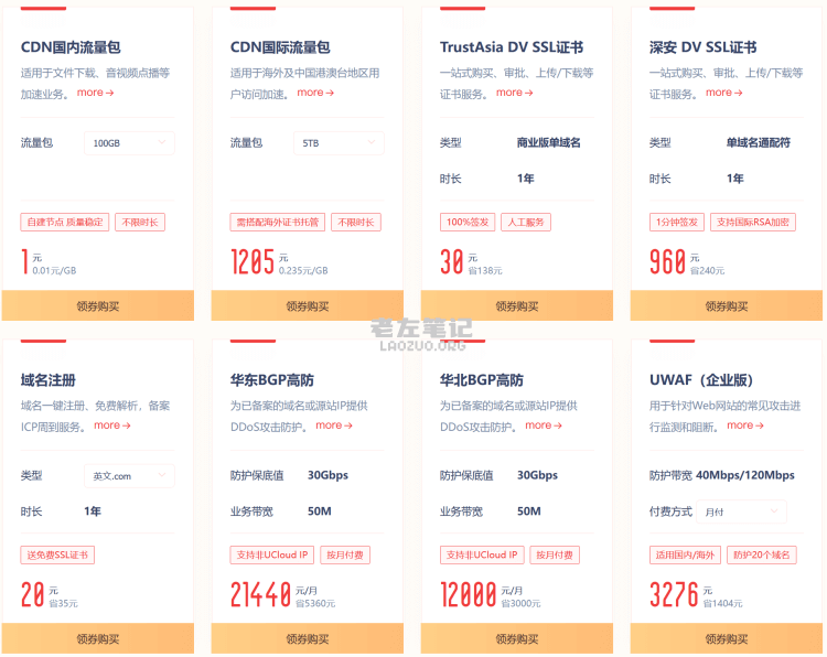 CDN加速、SSL证书、域名等产品对于新客也是有活动的。