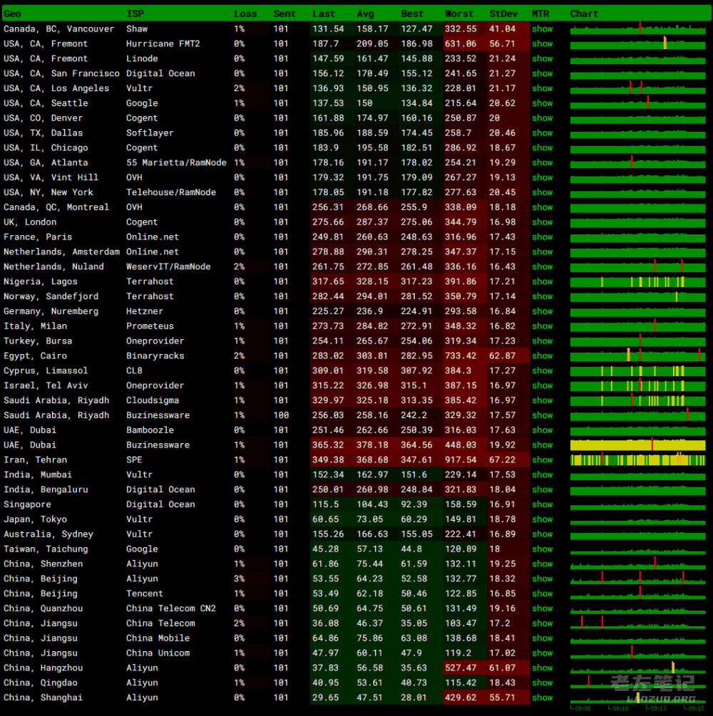 这里我们先看看PING速度,在我们国内的整体PING速度还可以。