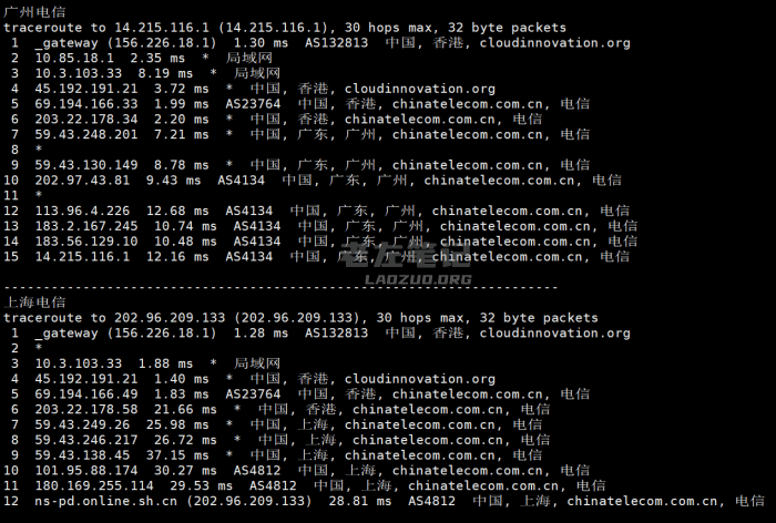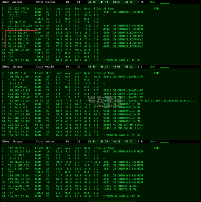 这里我们随机测试电信回程也是59.43节点。