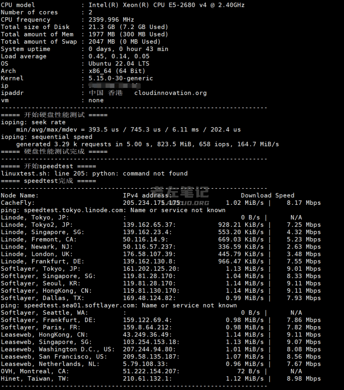 这里我们可以看到随机上传和下载测速。