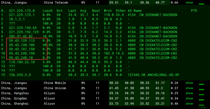 这里看到去程的电信是CN2 GIA。后面老左准备入手一台机器亲测看看。