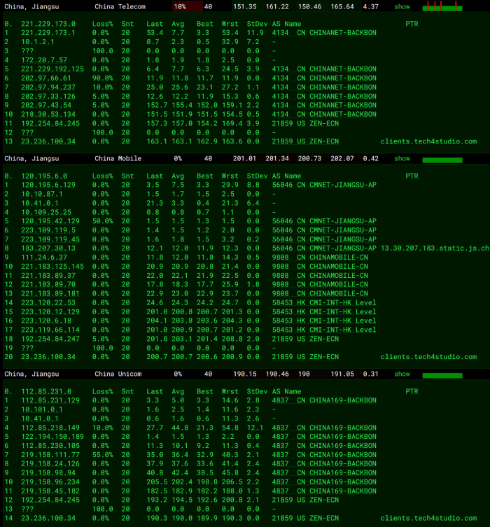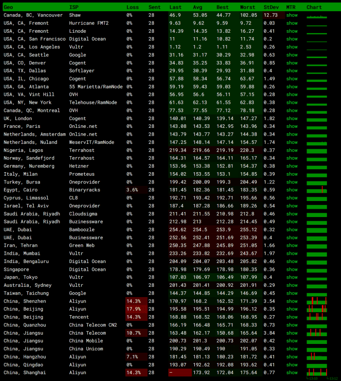 我们可以看到各个节点的PING速度。