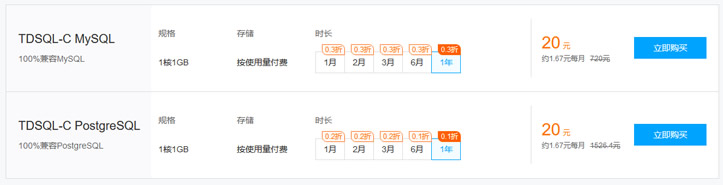 这里包括MySQL、PostgreSQL数据库。同时,还包括Serverless云函数产品。