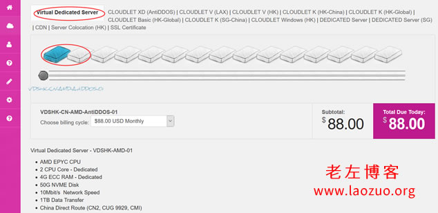 我们可以看到目前GigsGigsCloud新增两款香港高防VDS服务器起步月费用88美金,这个确实有点飘了,这也难怪目前这类产品在圈内不多,而且用户需求应该还是有的。所以商家设置这样的价格肯定是有他们的道理,线路是采用的是三网直连中国大陆,电信CN2、联通CU9929、移动CMI。防御方面5Gbps中国CN2防御、1Tbps欧美防御、支持防御CC。