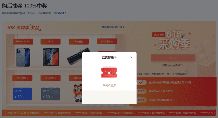 这里有三个抽奖资格,但是需要符合三个条件。