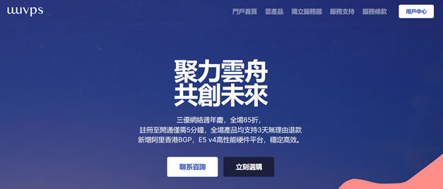 UUUVPS(中文名三优云)是香港三优网络公司旗下的云计算服务平台,成立于2019年,主打独立服务器及VPS产品,有香港、东京、圣何塞等数据中心产品,提供香港阿里云CN2、香港CMI、香港CN2、东京CN2、圣何塞CN2等优质线路的VPS虚拟服务器可以选择。 UUUVPS支持Linux和windows系统,其中香港机房为不限流量。近日,UUUVPS发布了最新优惠活动,香港CN2 VPS月付85折,半年付6折,年付半价,另有需要的可以看看。