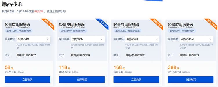 如果我们有需要服务器和轻量服务器的话,其实等不等大促基本上相差不大。比如老左看到当前轻量服务器最低年付是58元,2核2G4M配置,还是比较适合入门级用户的,当然最好还是有三年套餐的比较合适。