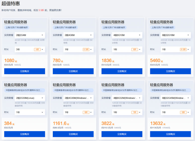 喜欢腾讯云的原因很简单,就是不欺负老客户,老客虽然没有新客优惠,但是也是便宜很多的。新老用户可以选择这里的轻量服务器,支持三年套餐。
