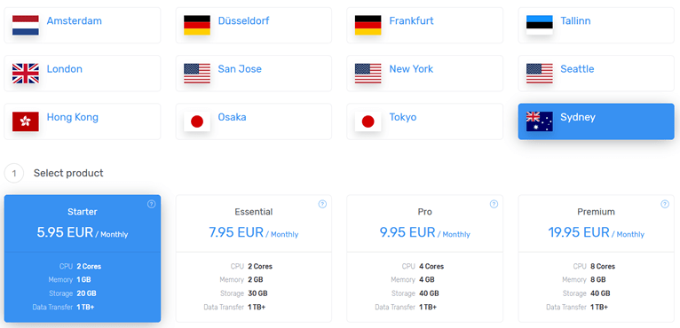 | 4核 | 4G | 40G | 1T/月 | €9.95/月 | 链接 |