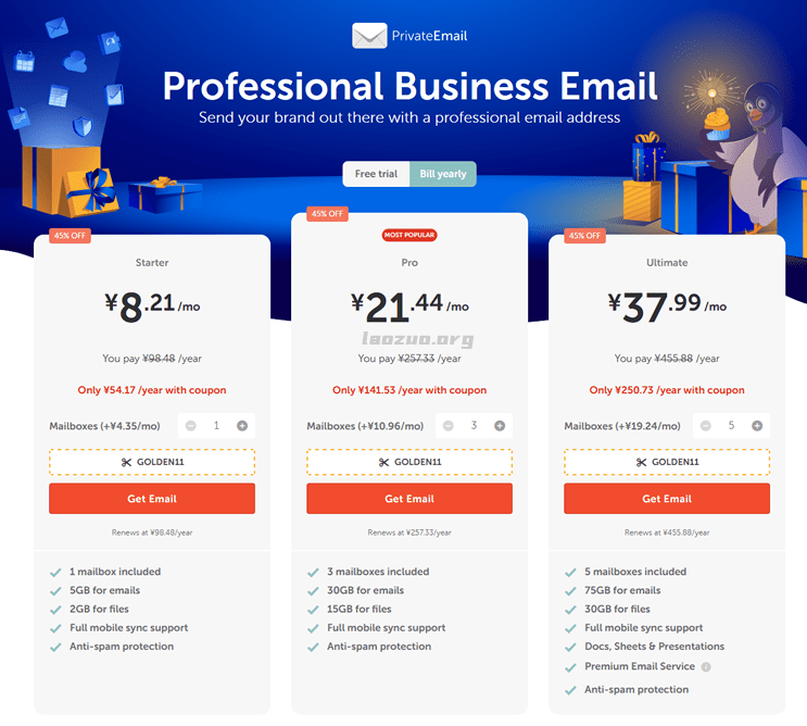 老左帮助一些企业注册外贸企业邮局的,我较多的会用到NAMECHEAP企业邮局,这几天在帮助一个朋友配置企业邮局就选择的是NAMECHEAP开始给他体验到新用户首月免费的,这次准备给他续约一年的。正好今天看到NAMECHEAP企业邮局有促销新注册和续约有五五折活动。