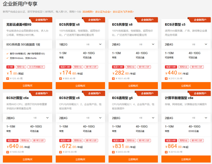 如果我们个人和企业需要云服务器、虚拟云主机的话,可以在这次云服务器精选活动中看看。尽量的能有选择三年就三年,毕竟新用户或者首单用户也是难得的。
