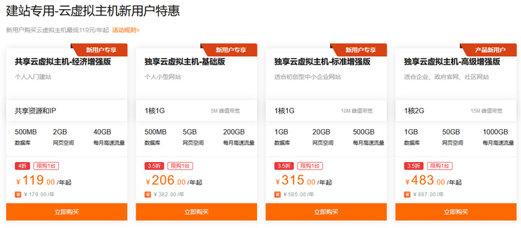 入门企业网站或者不会用服务器的,可以用云虚拟主机。新用户购买云虚拟主机最低119元/年起。