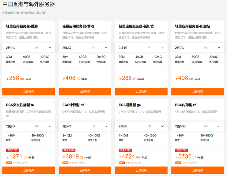 难得,阿里云还有香港和海外服务器,年付288元起步。