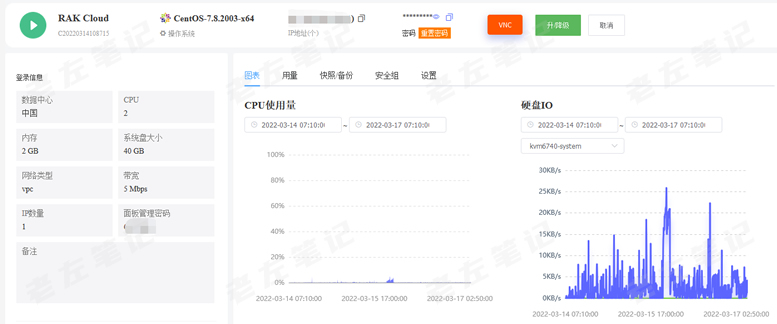 RAKsmart 香港云服务器起步特价套餐是1M带宽1G内存起步。这里这篇文章中,采用的是5M带宽2GB内存配置。