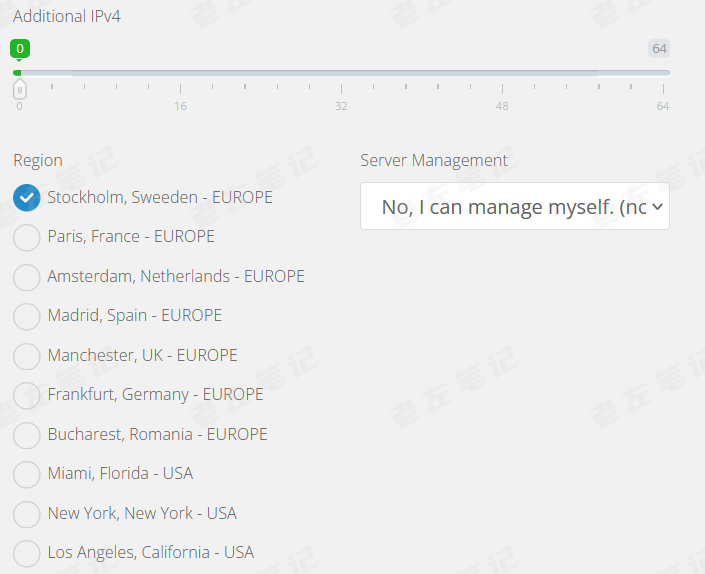 | 1核 | 1G | 30G | 2T/月 | 1G | €29.95/年 | 选择方案 |