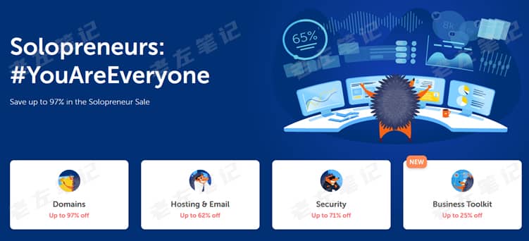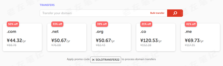 每个月中下旬的时候NameCheap商家按照正常的习惯均会有新注册和转入优惠,三月份老左看到NameCheap 商家有Solopreneurs活动。不管是什么噱头的活动,我们看到的策略都是差不多的新注册域名和转入域名优惠,包括还有一些虚拟主机、企业邮局、SSL证书等产品。