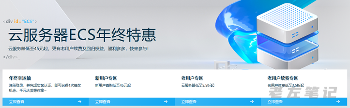 总结,如果我们有需要查看更多的阿里云优惠活动可以查看阿里云优惠券专题,如果我们需要购买阿里云服务器优惠的话,上面的活动是老左不定期整理更新的当前月份中可用适合新个人和企业的服务器采购活动。