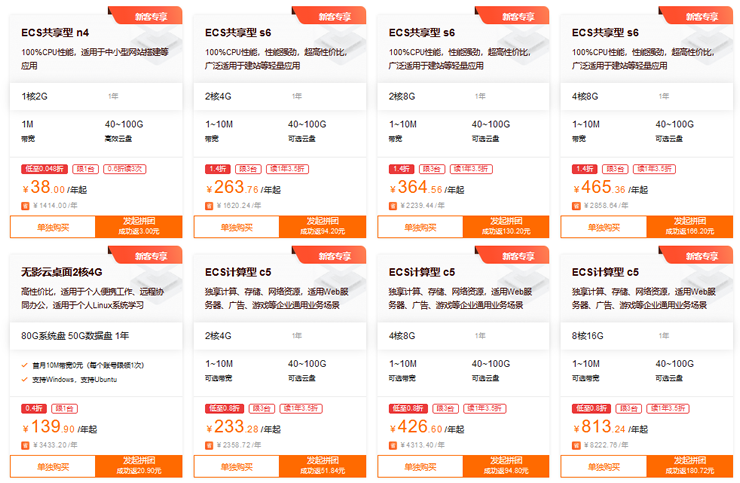 这几天我们看到阿里云服务器又推出一个新人团购活动,如果我们是阿里云新客可以参加下面的团购活动。云服务器N4配置100%CPU 2GB内存1M带宽年付38元。高配置服务器可以最高选择三台,如果我们有需要云服务器的朋友可以参加这个团购活动截止到1月16日。
