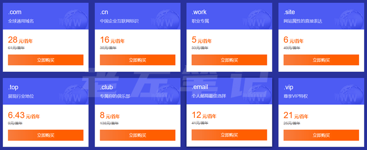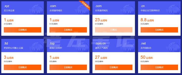 企业用户首个COM域名1元,新个人用户首个23元。如果我们没有新用户也不要紧,下面老用户也价格差不多。