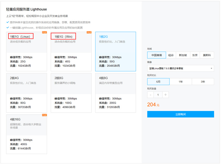 轻量云服务器也有香港机房,这里我们要看有区别Linux和Windows系统,不要选择错。如果没有标注的,那说明都有可以选择镜像。