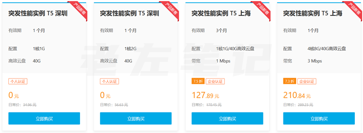 我们可以看到有几款免费和便宜套餐。首月有免费资格的,或者三个月127元云服务器。