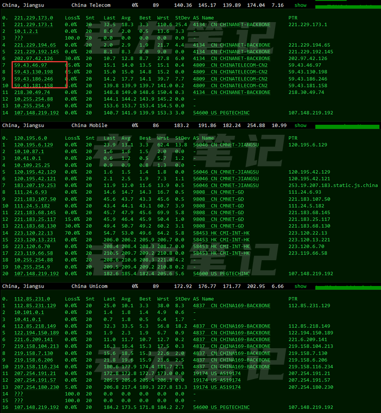 我们可以看到电信去程是CN2线路。他们的精品网络比大陆优化的速度优秀。还有一个CN2 ONLY的更好一些。当然价格也是不同的。