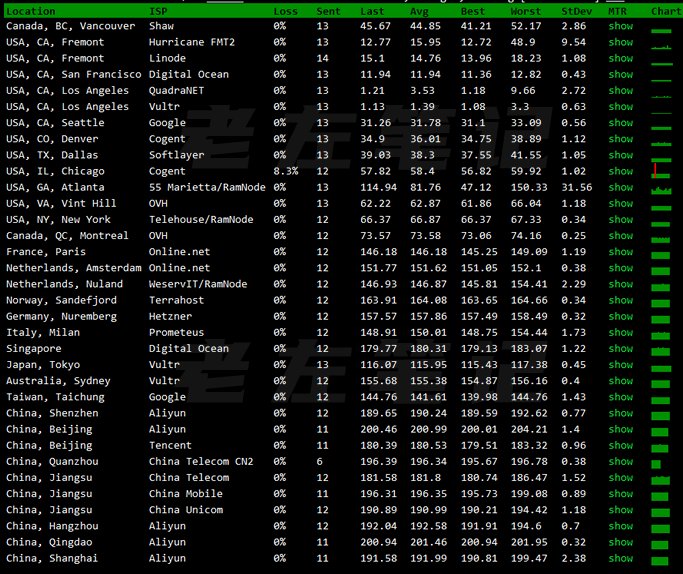 3、中国移动 : CMI (中国移动美国直连)(10G)