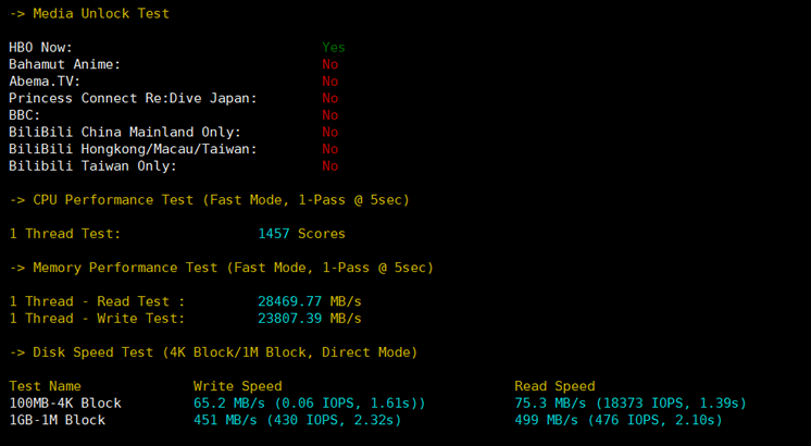 我们看看巴西数据中心的配置、硬盘读写测试。