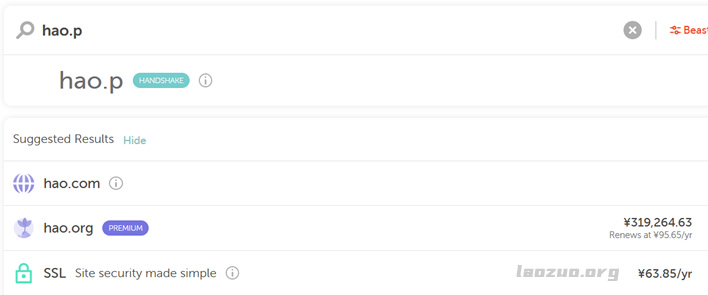 今天中午的时候,老左看到群里网友在聊到 .p 后缀的域名,这个单字符的域名确实之前没有见过,以为是又新出来的域名后缀,这不可以去选择注册个玩玩。最后发现 这些域名是NameCheap 新推出的11个Handshake域名后缀的一种。这个新产品是什么呢?
