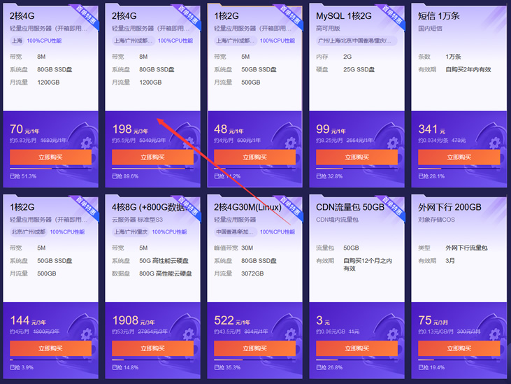 对于轻量服务器用户来说,我们入门型的建站或者云产品需要,轻量服务器198三年的套餐确实有很大的性价比。如果我们之前没有买过轻量服务器的老账户也是可以买的。