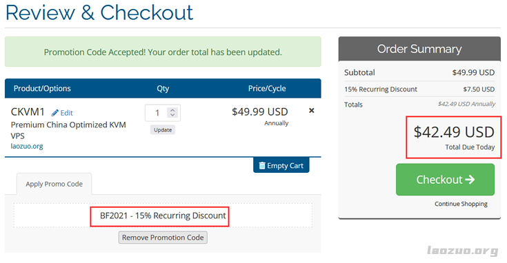 我们需要使用优惠码:BF2021,才可以享受八五折优惠。上面价格是原价。优惠后低至42美元一年左右。
