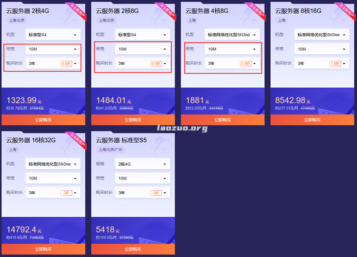 我们可以看到企业用户的话,无论是云服务器、轻量服务器,包含其他数据库、CDN存储等产品是比较丰富的。这里老左将企业用户带宽都设置最高的10M且三年,我们看到折扣力度还是比较大的,个人用户就没办法选择这么大的配置,企业用户丰富一些。