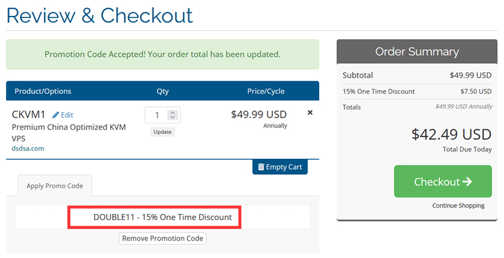 这是原价,我们需要用到优惠码 DOUBLE11。