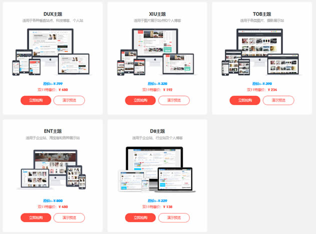 活动截止到11月11日。六折优惠后的价格比一般的主题绑定单域名的价格还要便宜,而且只要我们自己使用,DUX和XIU主题是不限制绑定建站域名数量的。在这里,这两款主题值得选择其他几款主题不建议选择,比如D8主题老左也有入手,但是移动端支持适应比较差。