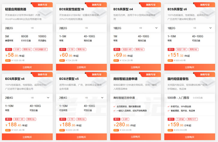 今天凌晨我们有熬夜付款电商平台的尾款吗?是不是感觉平台的套路还是蛮多的。这不今天我们看到阿里云服务商的双十一活动也正式开始,如果我们是老用户的话基本上可以绕道。每年的活动都是新人优先,如果我们有新人资格的话,也可以看看阿里云的促销,比如云服务器的优惠力度还是有的,轻量服务器年低至58元,ECS云服务器低至年60元。
