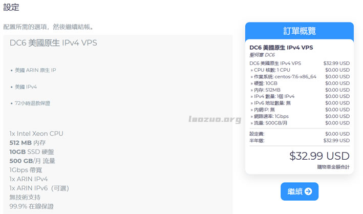 这次老左有看到半月湾商家有新增半年32.99美元的CN2 GIA三网优化方案,如果我们有需要的可以选择,带宽是1Gbps。512MB内存、10GB SSD硬盘、500GB月流量,相比某商家来说配置差不多,就硬盘少10GB,但是价格也便宜不少。