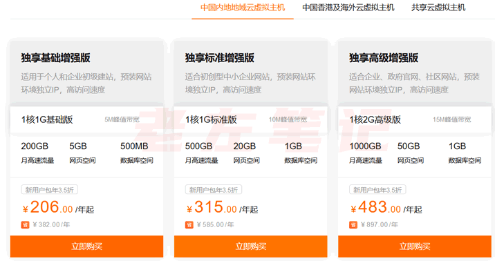 独享虚拟主机,我们可以看到有大陆机房和香港机房的。当然活动仅限新用户。