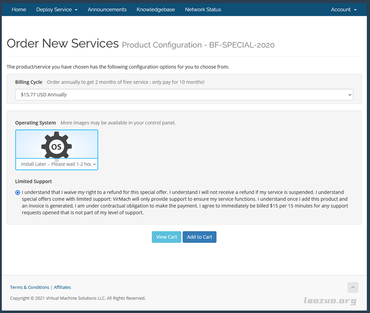 这里我们可以看到当前,在促销的是年付15.77美元的方案。年付还多赠送2个月时长。