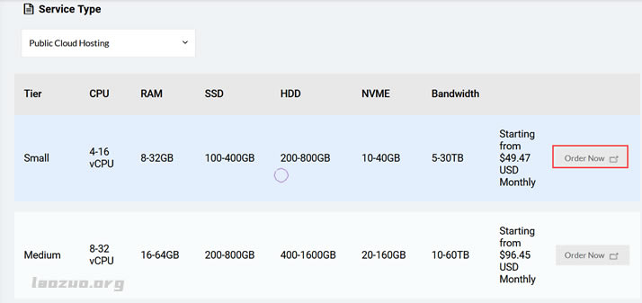 | 4-16 | 8-32G | 100G-0.4T | 200-800G | 10-40G | 5-30T | $49/月 | 购买 |