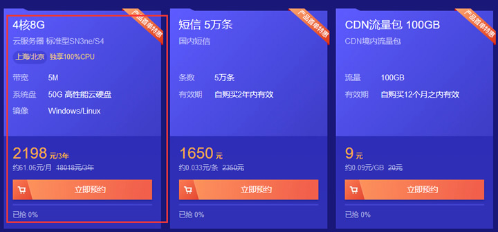 我们可以看到4核8GB5M带宽配置的,三年2198元,这个性价比也是比较高的,不限制流量。