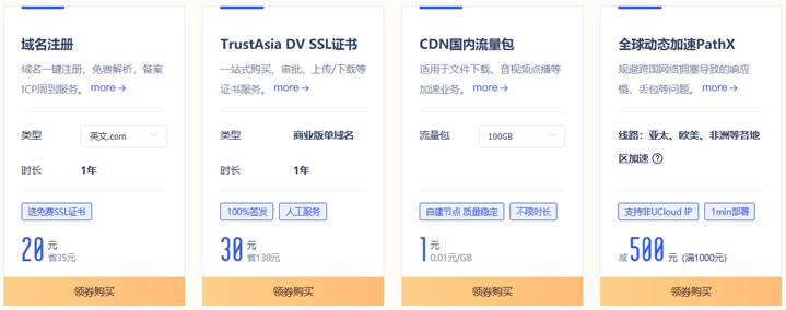 其他的话,UCloud服务商还包括有实时音视频、云通信产品活动。