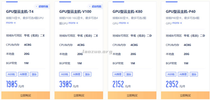 Cloud GPU云主机可大幅提升图形处理和高性能计算能力,并具备弹性、低成本、易于使用等特性,降低IT成本投入。本次夏季钜惠活动首日推出GPU云主机特惠专场,GPU型云主机-T4超值特惠1905元/月,搭载T4显卡,最多可选4颗GPU,可用于AI训练、AI推理及渲染等场景。